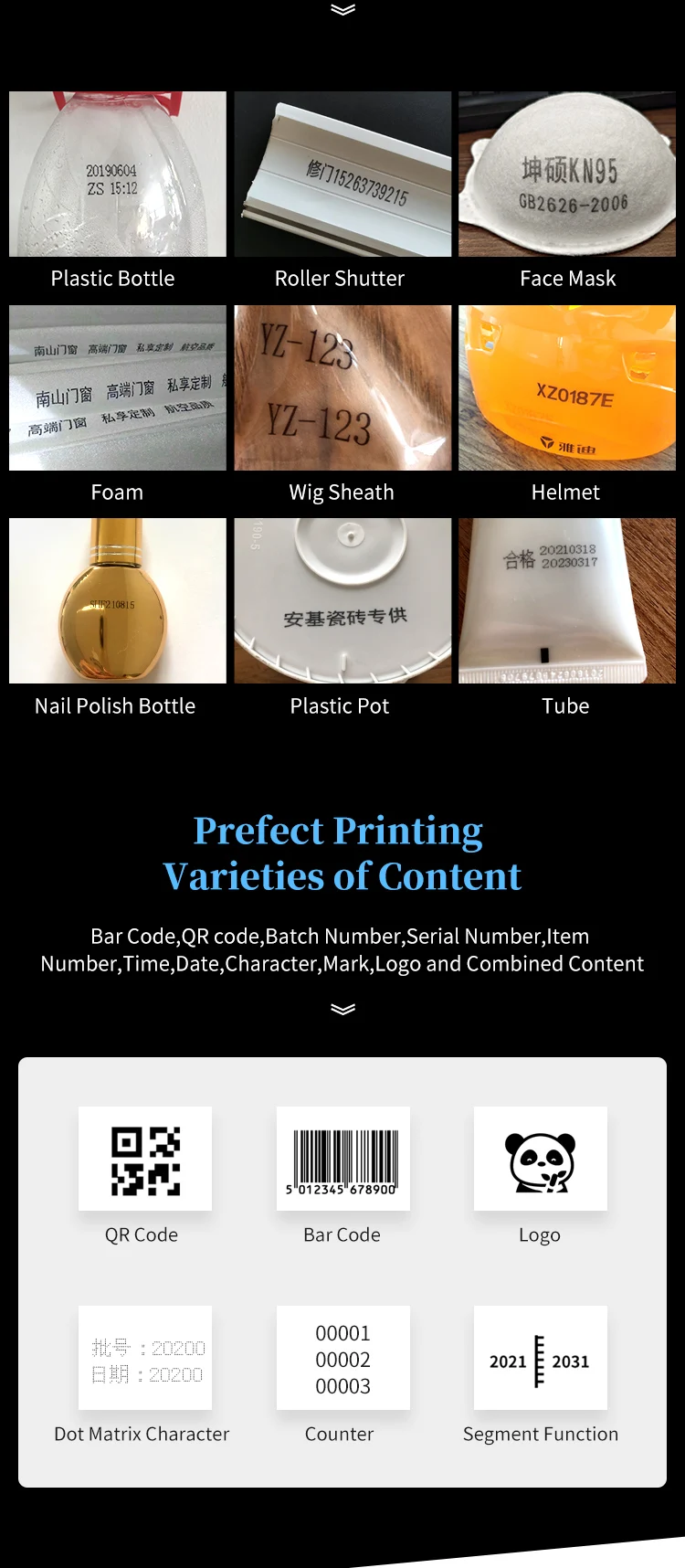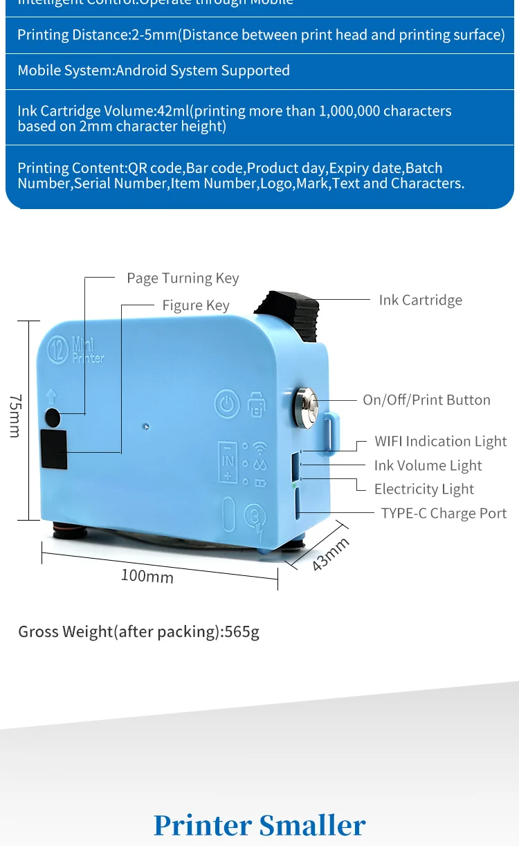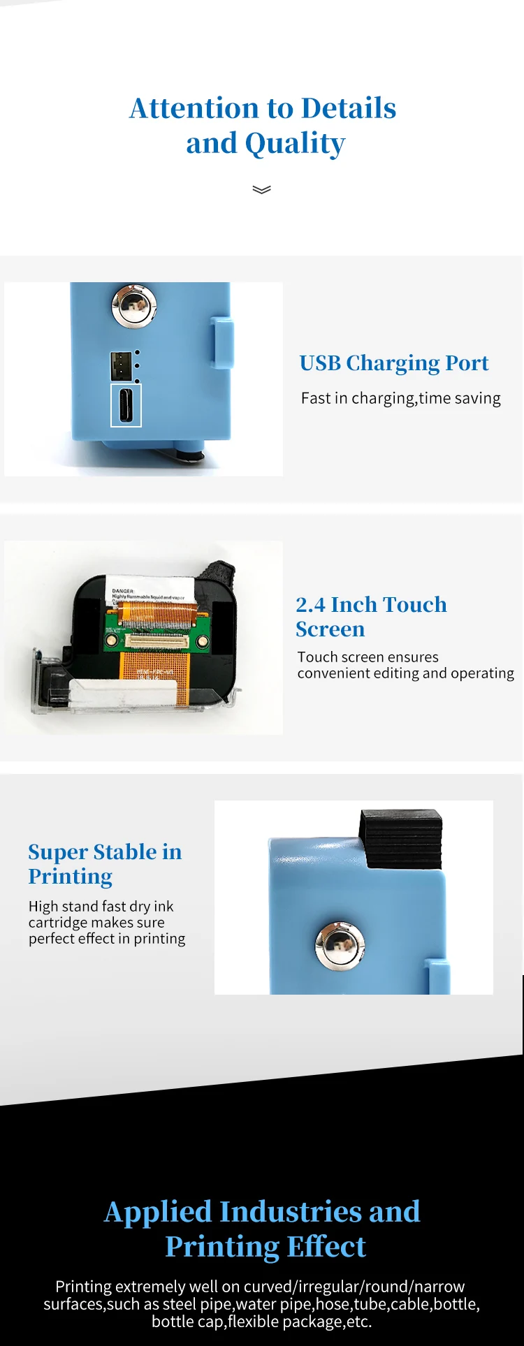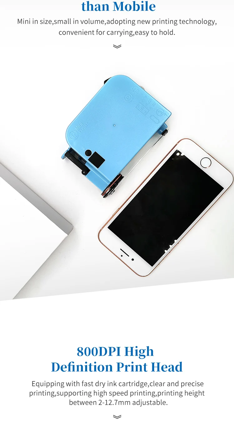Mini printer is superfine for printing on plastic bottle,glass bottle,ceramics container,aluminum can,steel pipe,irregular shaped spare parts,hose,cable and related materials.