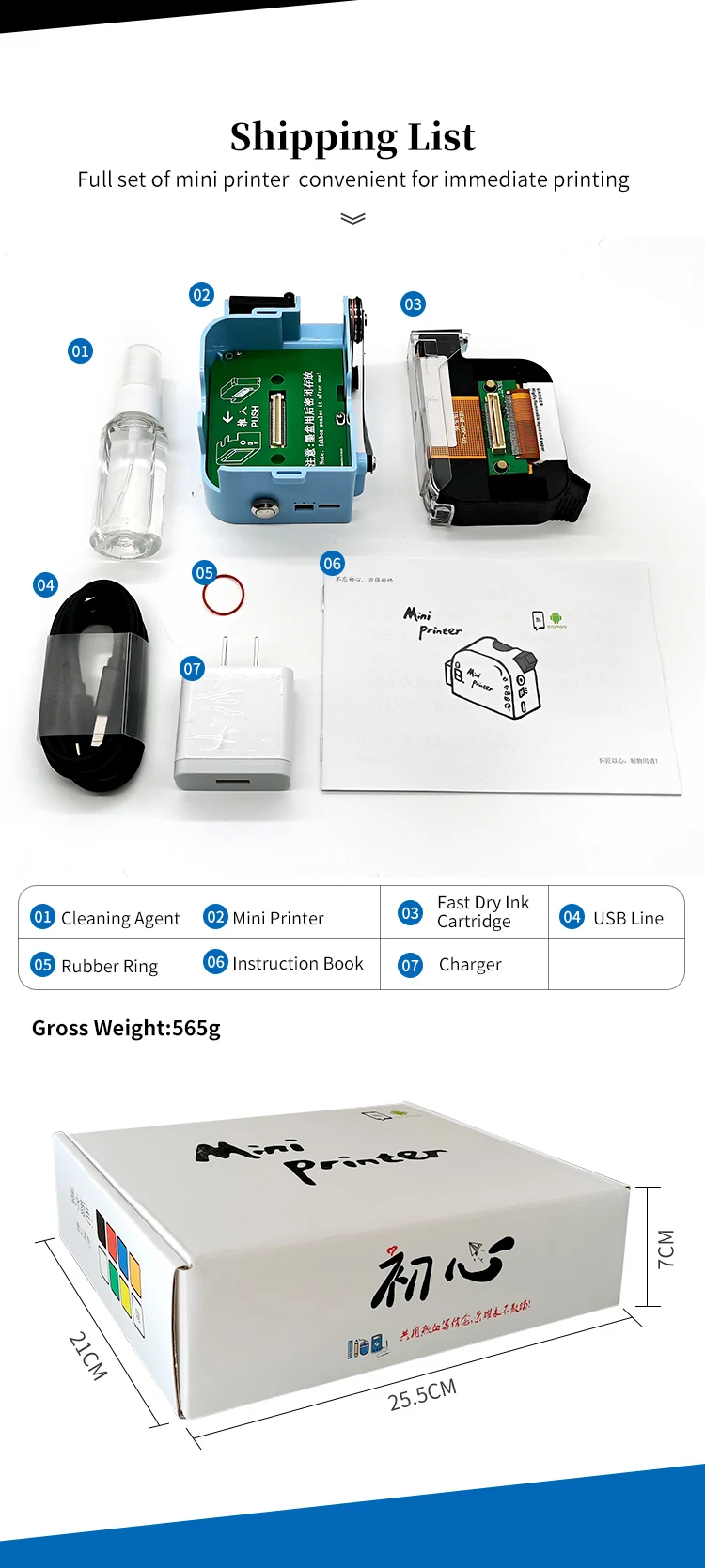 All of our mini printer are equipped with high stand fast dry ink cartridge when ensure its high performance and perfect printing effect.