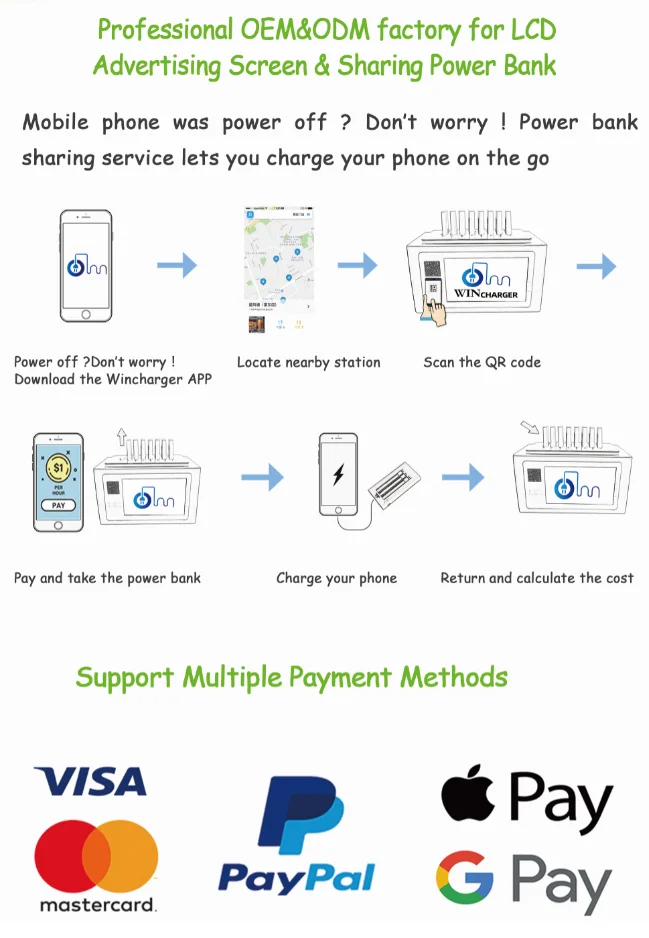 A: Our factory was established in 2010, which is focus on LCD digital signage at the past few years, as the company grows and progresses, we are gradually expanding our product category. For power bank renting station, we have been working for three years which is the most flourishing time of power bank sharing station in China.