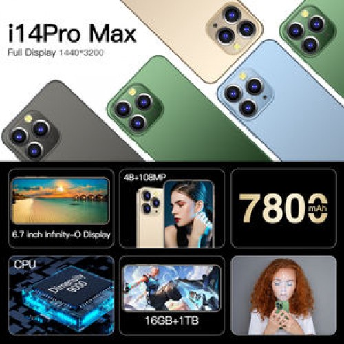 Hot Selling PHONE I 14 PRO MAX original 16GB+1TB 6.7 Inch Phone original full Display Android 12.0 Mobile Cell Smart phone