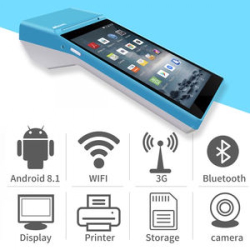 This POS PDA can use Android 8.1, WIFI, 3G/4G network, Bluetooth, print receipt, and large capacity storage card.