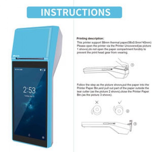 POS PDA uses 58X40mm receipt printing. It can be printed successfully in 1sec. No need to wait.