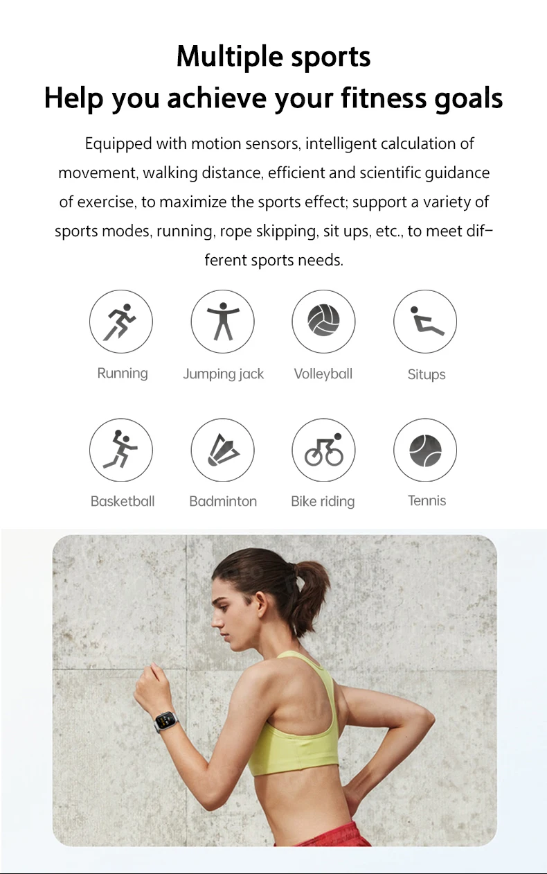 basic function | step、distance、Calorie、Heart Rate/Blood Pressure/Oxygen Monitoring、Sleep monitoring、call reminder、SMS Alerts、Social APP Message Reminder、Alarm clock reminder、A sedentary reminder、sport、Turn the wrist and shine the screen、Looking for bracelets、Looking for Phones、Remote Photography、Rejection of calls、Do Not Disturb、Multi-dial switching,music control,BT phone |