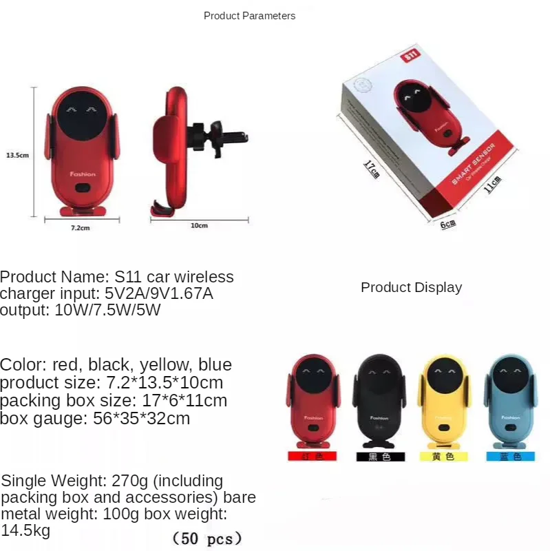 S11 wireless car charger intelligent infrared automatic induction car mobile phone base wireless charger bracket