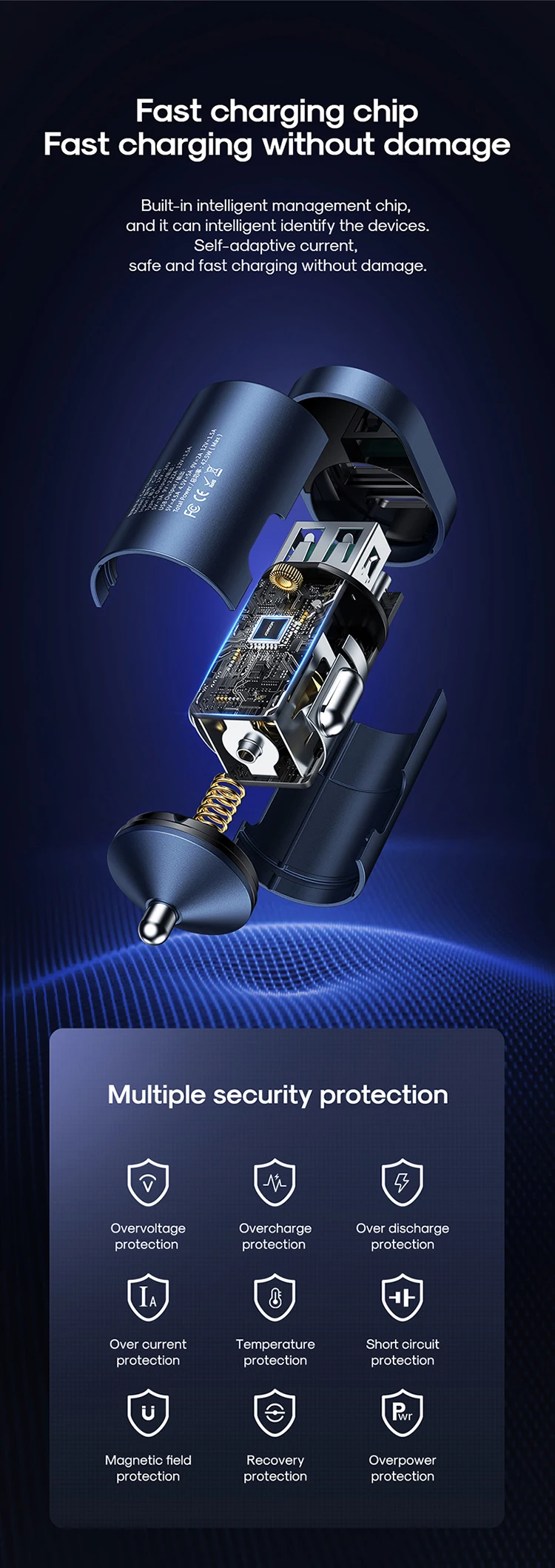 3. Dual port output,48W high power, supports fast charging for two devices simultaneously;
