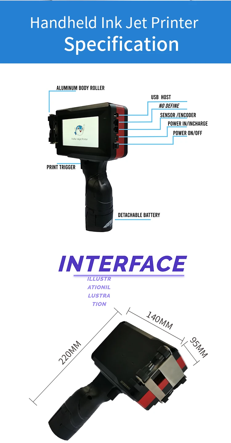 12 Mm Height Mini Handheld Bottle Inkjet Printer