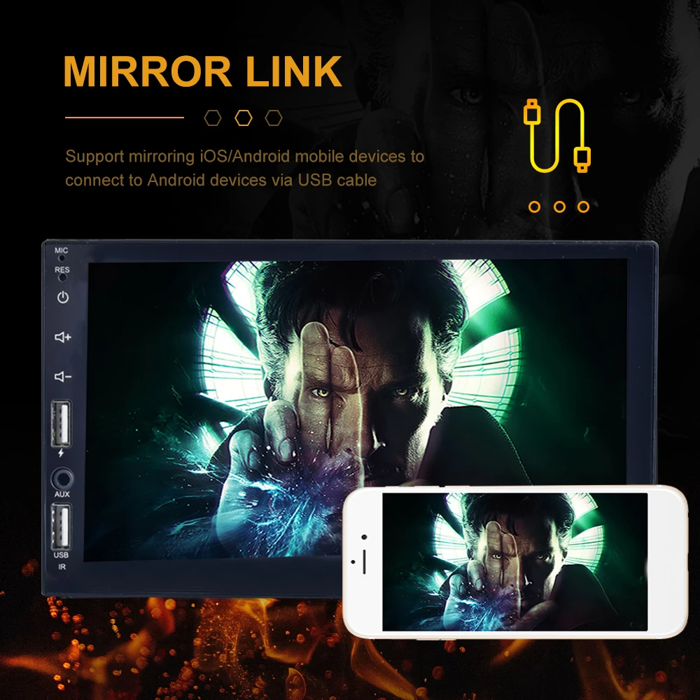 Support mirror Link with android phone by USB cable, or mirror Link android phone or IOS phone by hotspot | |