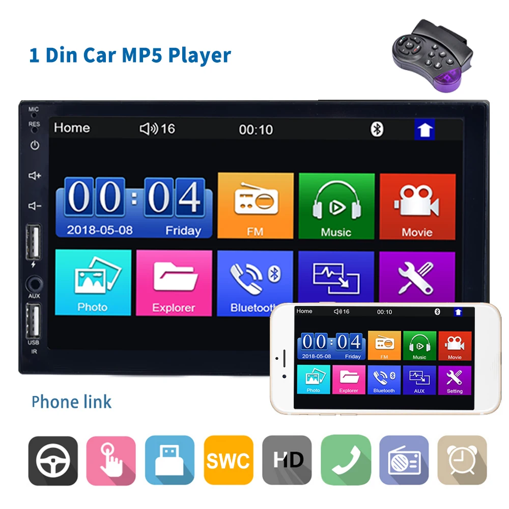 7 Inch Touch Screen In Dash Remote Control Car Radio 1 Din Stereo Mp5 Player Car Mp5 Double Din Car Audio Stereo Auto