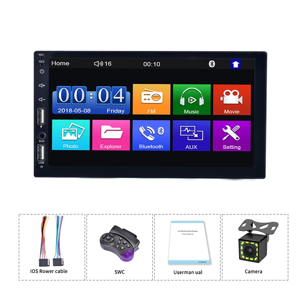 7 Color Back Light Car Radio FM BT Hand-Free Call SWC Mirror Link 7 Inch 1 Din Car MP5 Player With Camera